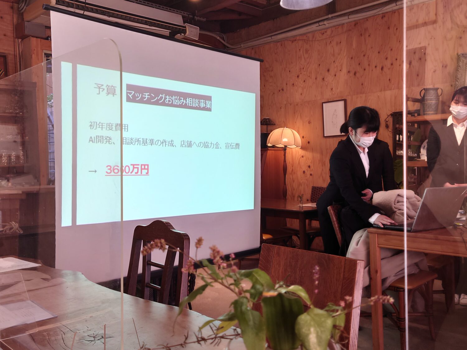 木村様「今、大学生のインターンの受け入れをしていて、その子達が政策を発表するプレゼン大会に出ます。商店街に対しての提案を作っています。今度そのプレゼンの予行演習をするのですが、良かったら見学にいらっしゃいますか?」