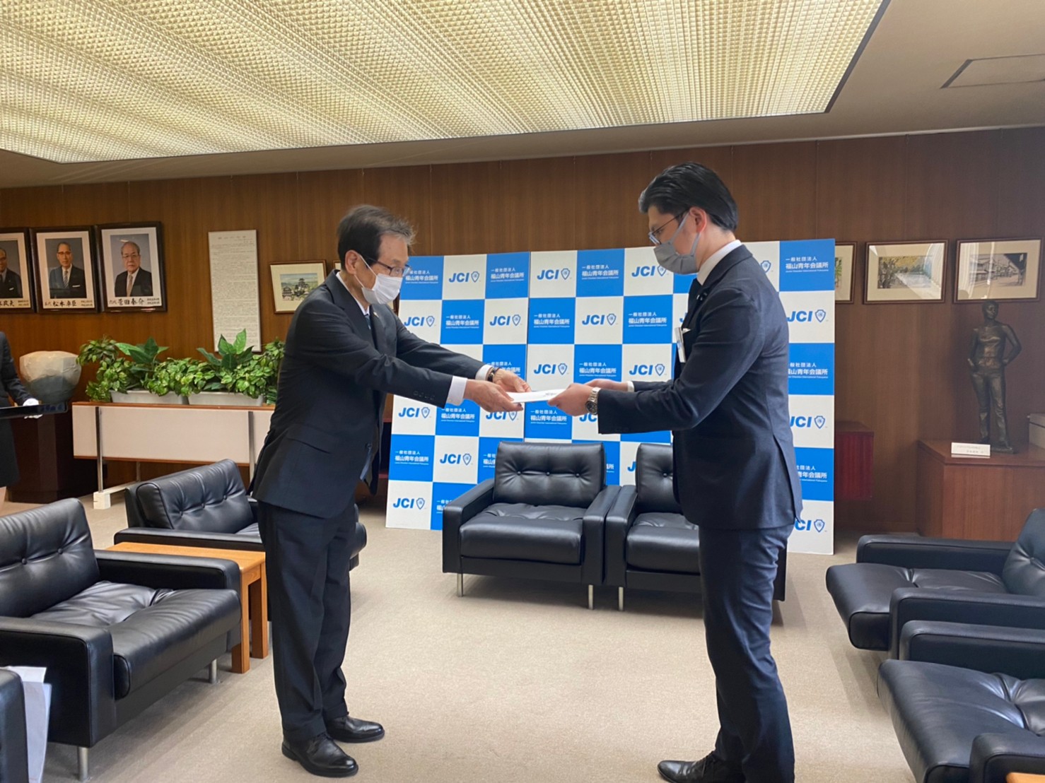 本日、福山へ避難されたウクライナの方への支援として、福山青年会議所メンバーから集めた支援金20万円をふくやま国際交流協会様へ寄付致しました。