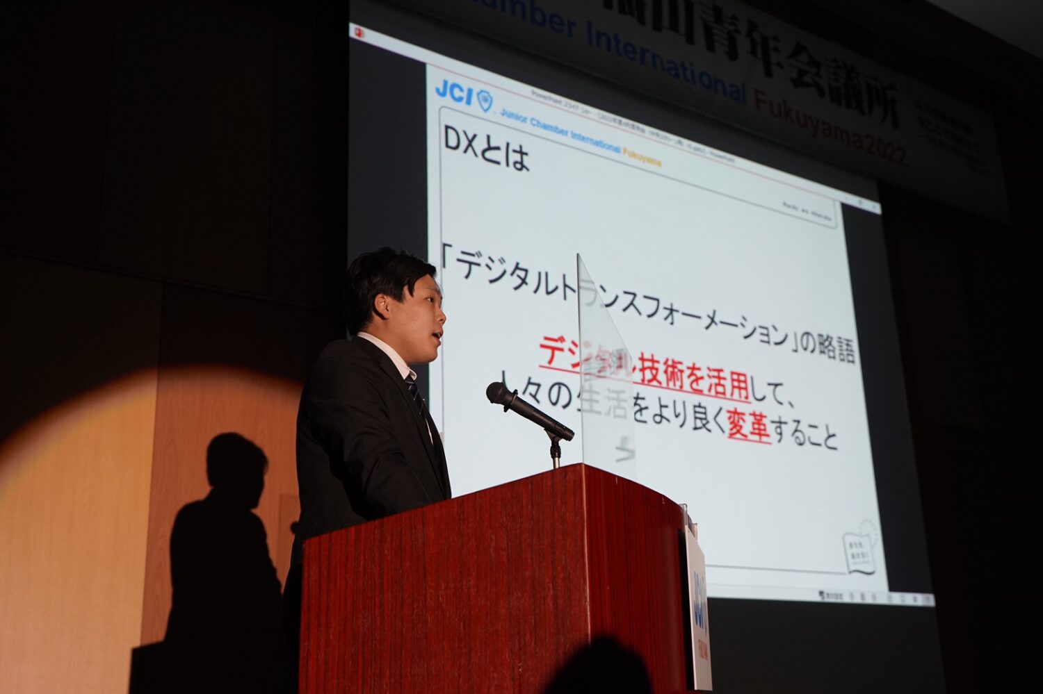 “まちをつなぐ”推進委員会が担当した例会行事では「今ここで始めよう!~つながり続ける未来に向かって」をテーマに、寸劇を交えながら、つながりを構築する意義とDX(デジタルトランスフォーメーション)を推進する有用性につての学びを得ました。