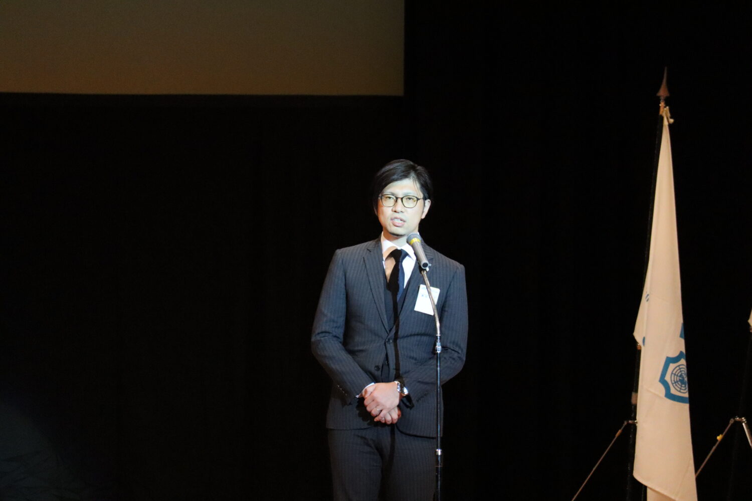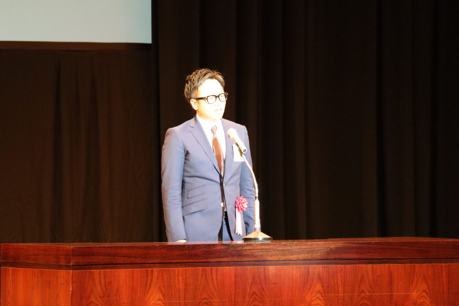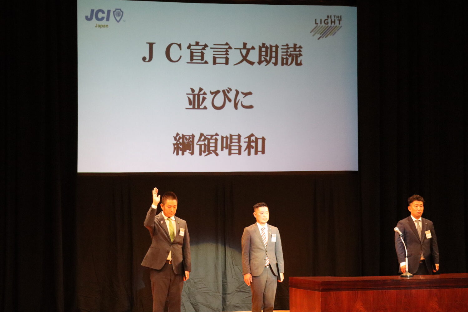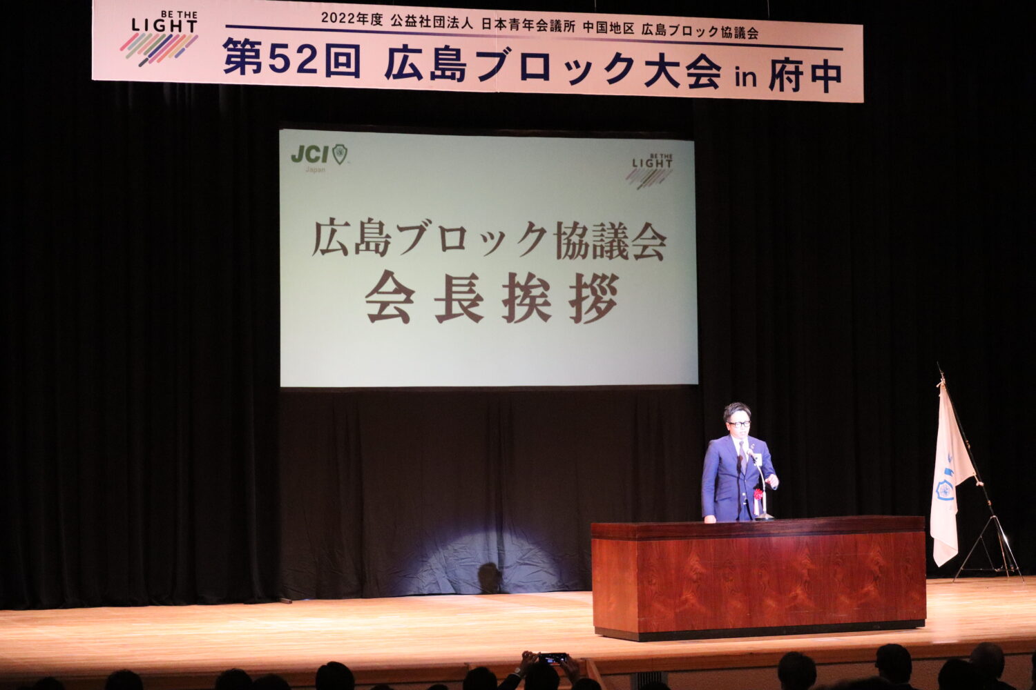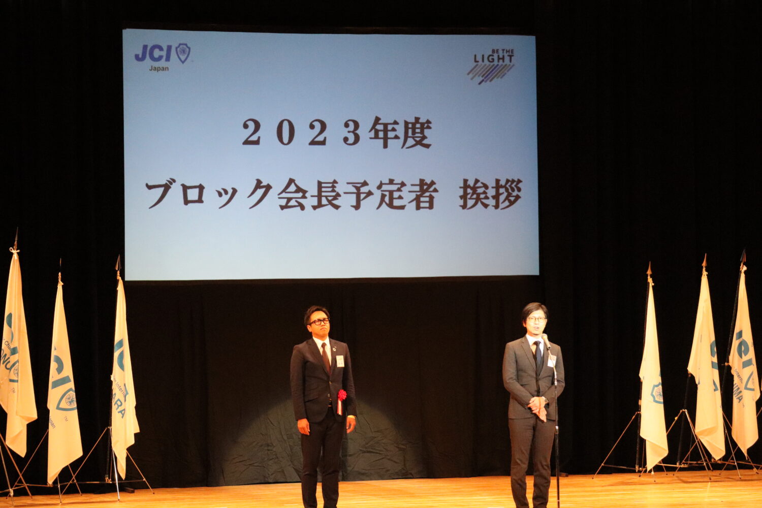 ブロック役員団の紹介、県内12ヵ所の青年会議所紹介の後には、2023年度広島ブロック協議会会長予定者として福山青年会議所の島田宗輔君が発表され、その後のご挨拶では来年度の運動方針や想いを述べられました。