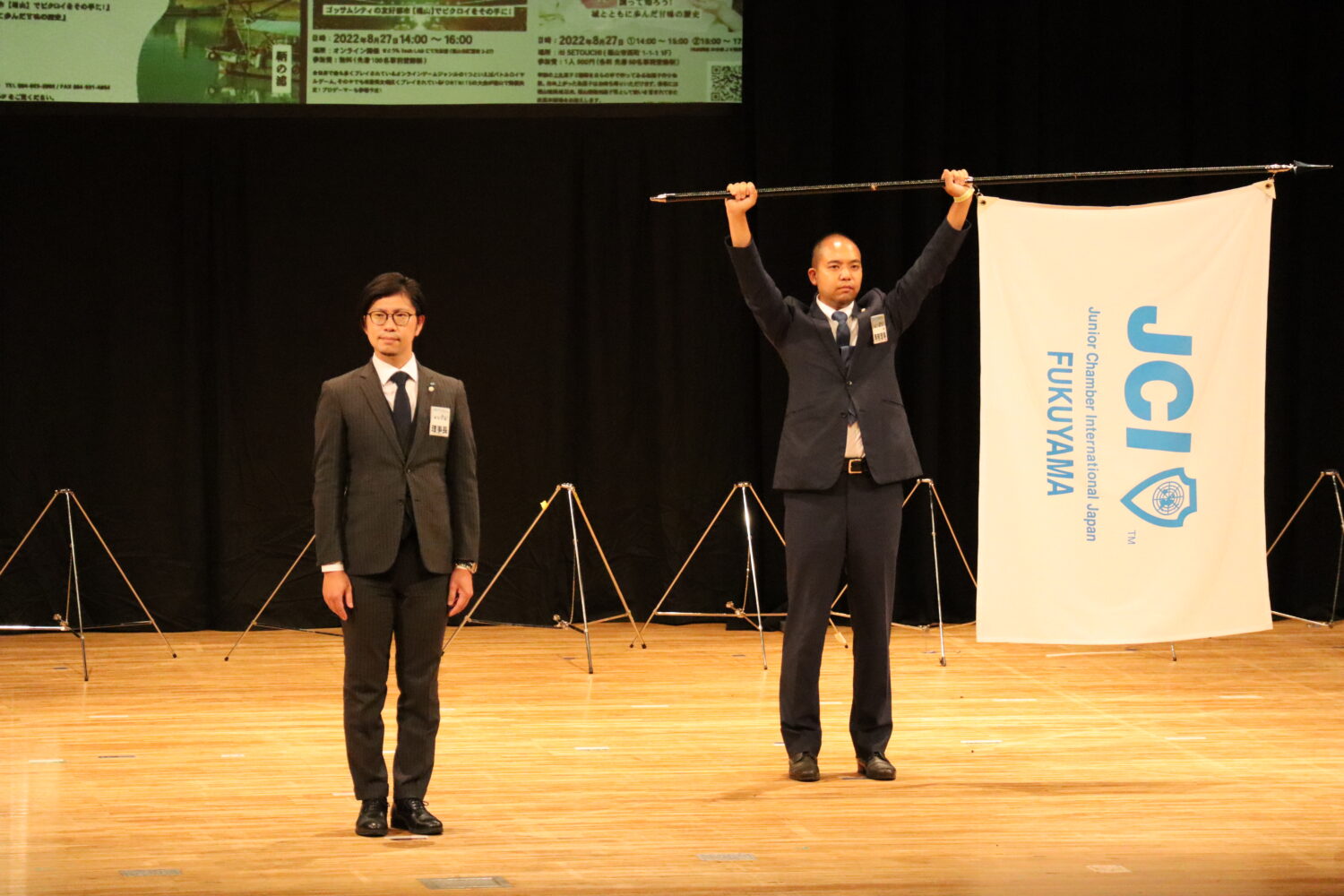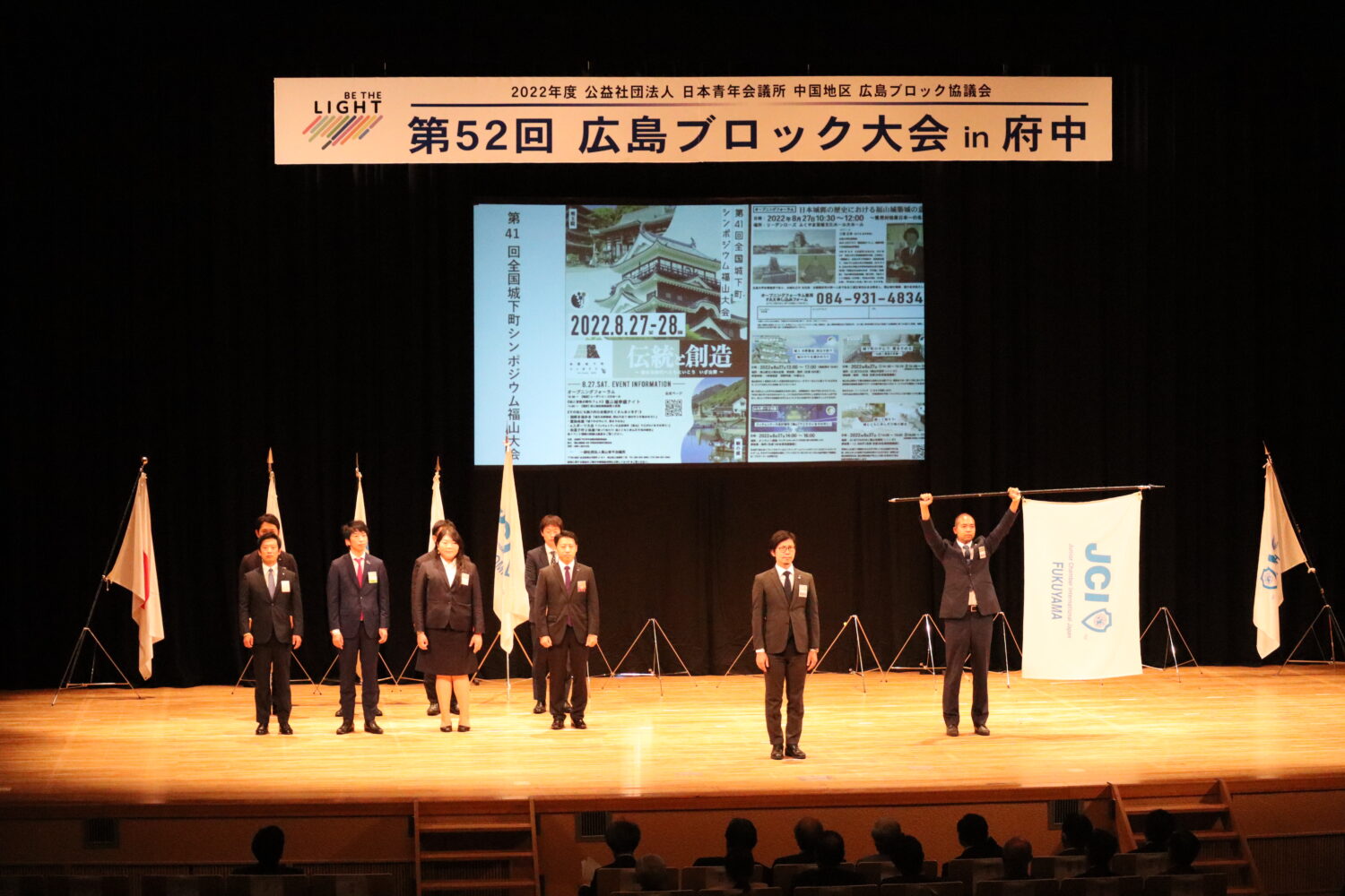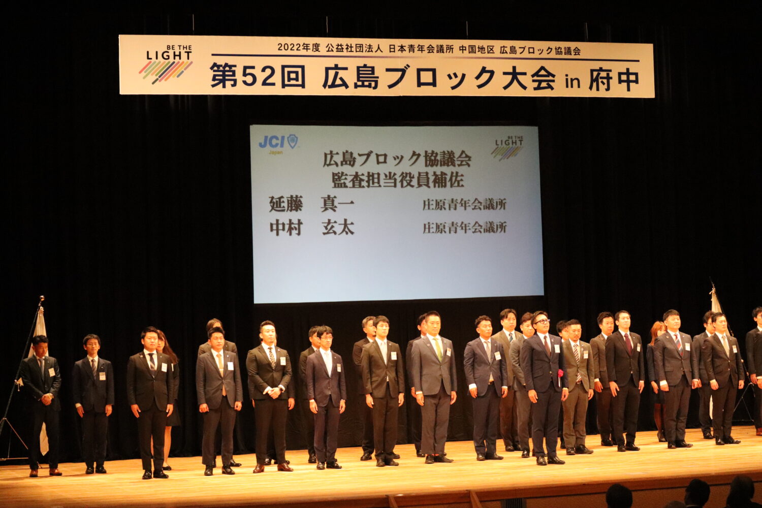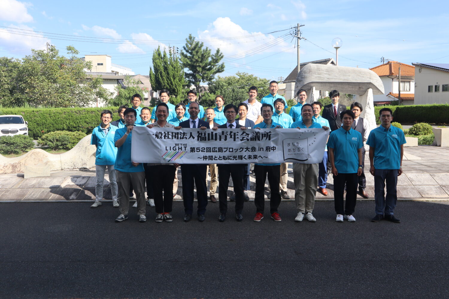 福山青年会議所からも副会長の村上弘毅君、監査担当役員として宇田貴美君をはじめ、多くのメンバーが出向しており、多くのメンバーが府中の地に駆け付けました。