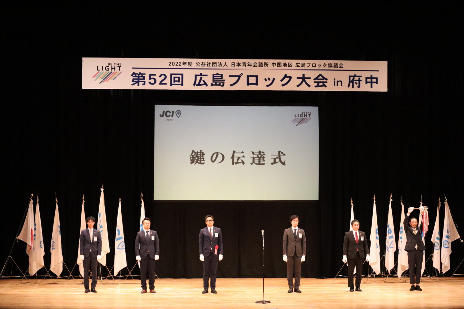 また、来年度第53回広島ブロック大会の大竹市で開催地が発表され、鍵の伝達式では大竹青年会議所 大会実行委員長予定者の齊藤正典君に大会の鍵が伝達されました。