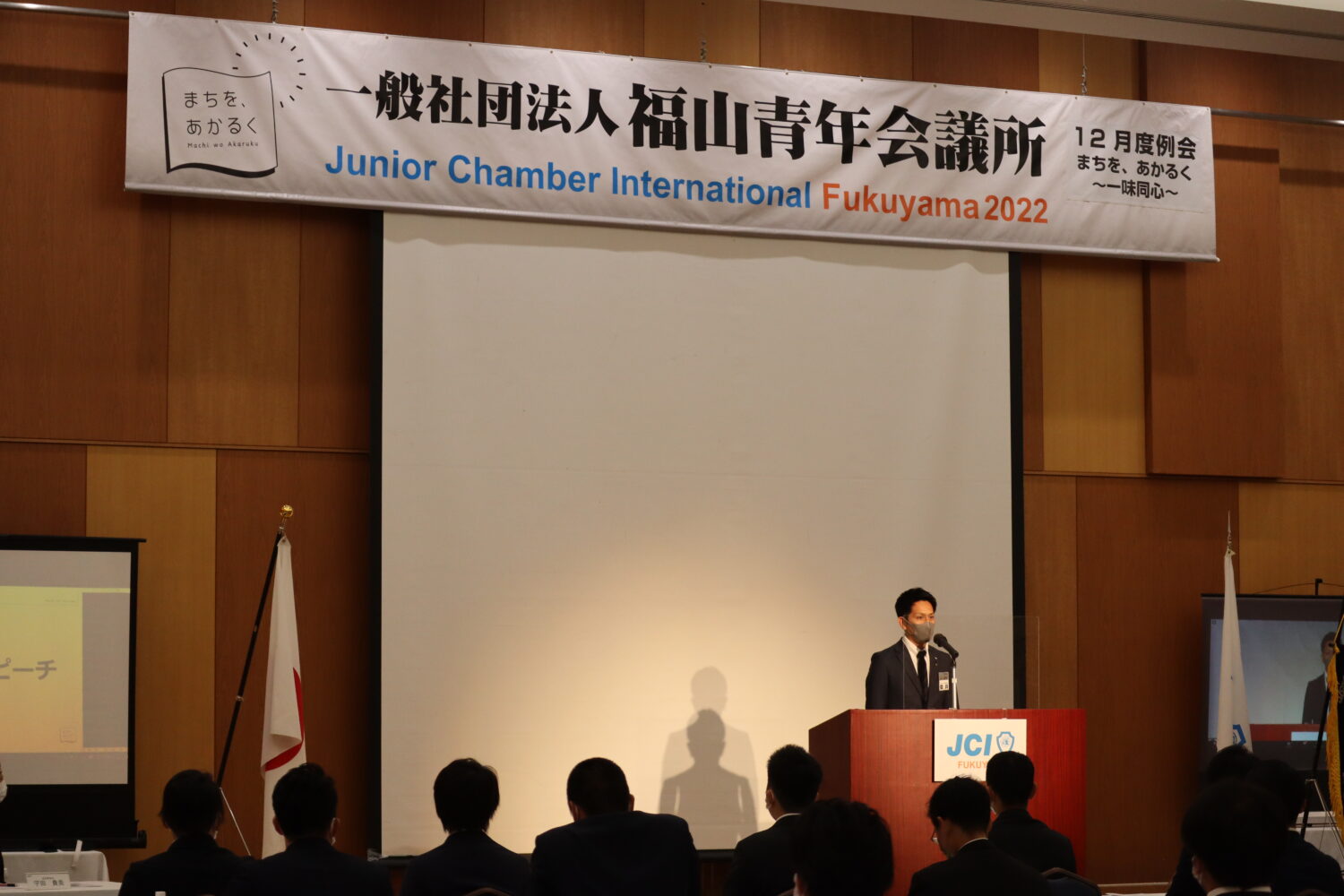 12月1日、福山ニューキャッスルホテルにて2022年度最後の例会となります、12月度例会が開催されました。