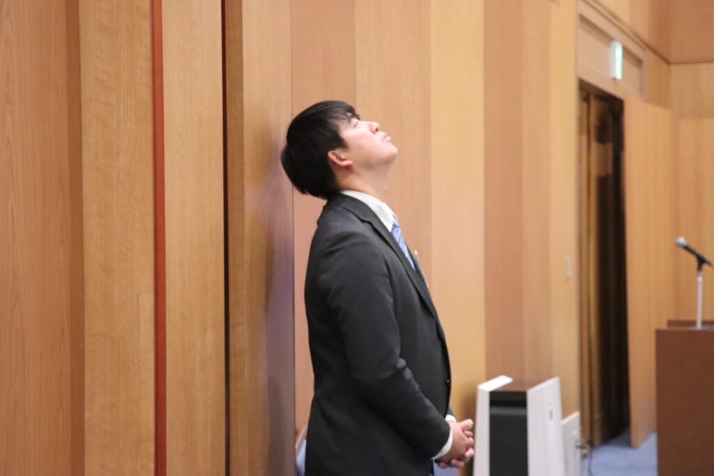 例会の締めくくりとなる監事所感では石井伸弥監事が、例会行事の中で渋谷様が語った「犠牲にしている人や時間を忘れないでください」という言葉から、「自身も自分の妻や娘、そして働いている職員の皆様のことが頭に浮かんだ、そのような人たちに恥じないように取り組んでいかなければならなければならない。『一期一会』、人生一度の出会いや経験を大切にするという言葉ですが、今回の2月度例会の経験、出会いを活かせるかどうかは自分次第なのだから、ぜひ明日以降の活動に活かして欲しい」と語りました。