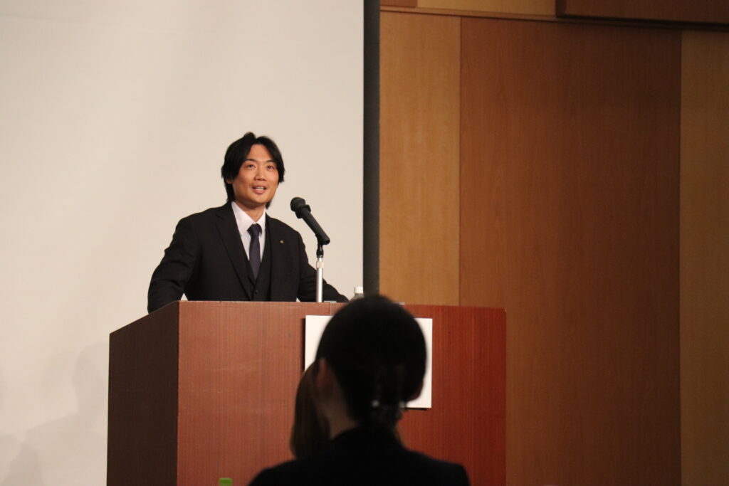 自己紹介からはじまり、JCのミッション、JCと社業(ビジネス)の関係、JCで学べる5つの奥義、と目白押しの内容で、スライドも無くマイク1本だけにも関わらずあっという間の45分でした。JCで学べる5つの奥義の1つとして、「青年会議所では『言う』ではなく『伝える』スキルが身に付く」というものがありましたが、まさにそれを実践されている講演だったと感じました。
