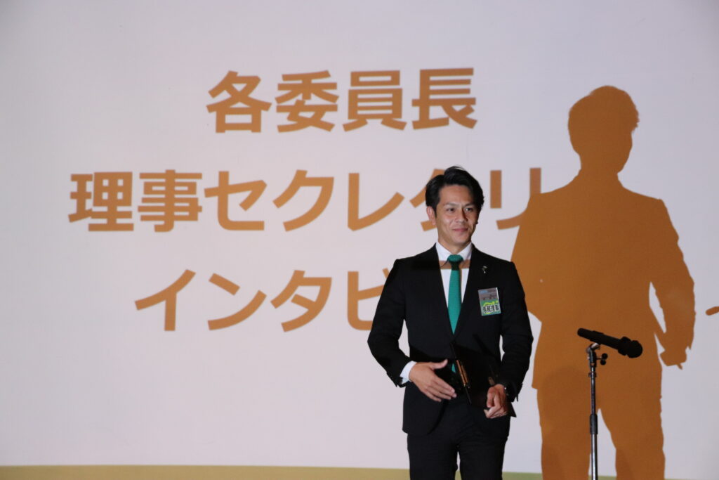 座談会形式で、7つの委員会の委員長とセクレタリーグループの代表者が壇上でこの1年間の活動や成長について語り、共に歩んだ仲間たちへの感謝を伝えました。そして最後に、佐藤理事長がメンバー全員に対して今年の活動に対する感謝を伝え、この1年間の締めくくりとしました。