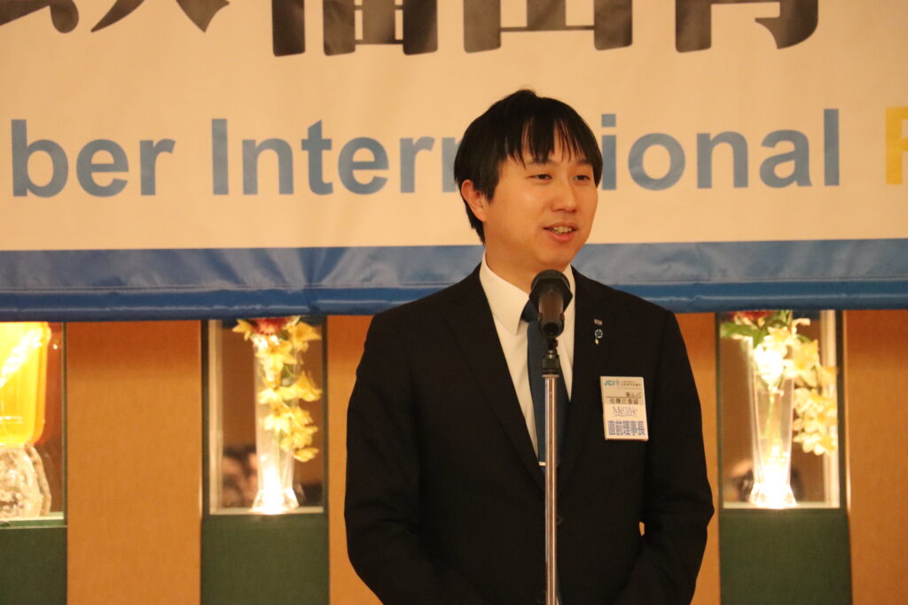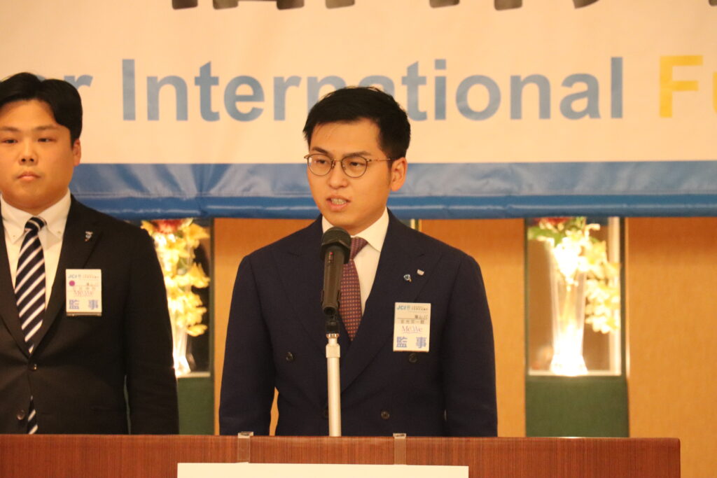 続く2026年度最初の理事長挨拶では、本年度理事長の長鋪毅輔君より、「目的を持って行動すること」をテーマに、一人ひとりが意識を高く持ち、主体的に活動していくことの重要性が語られました。