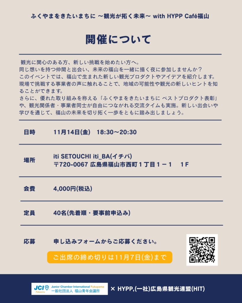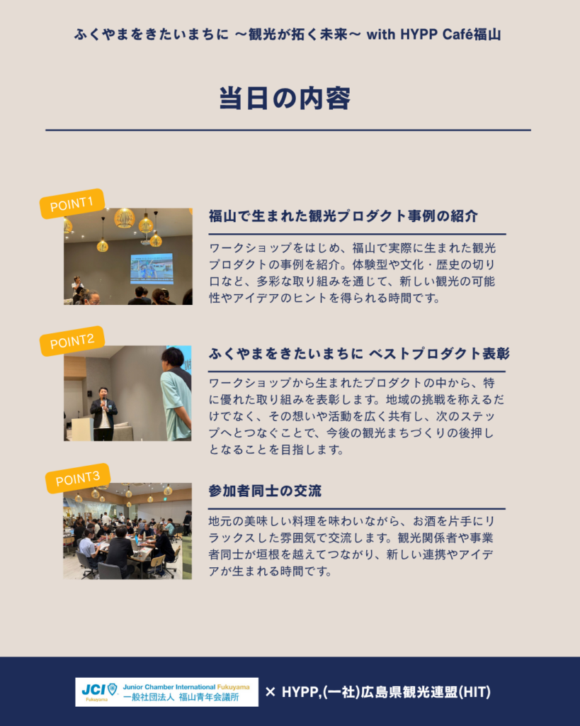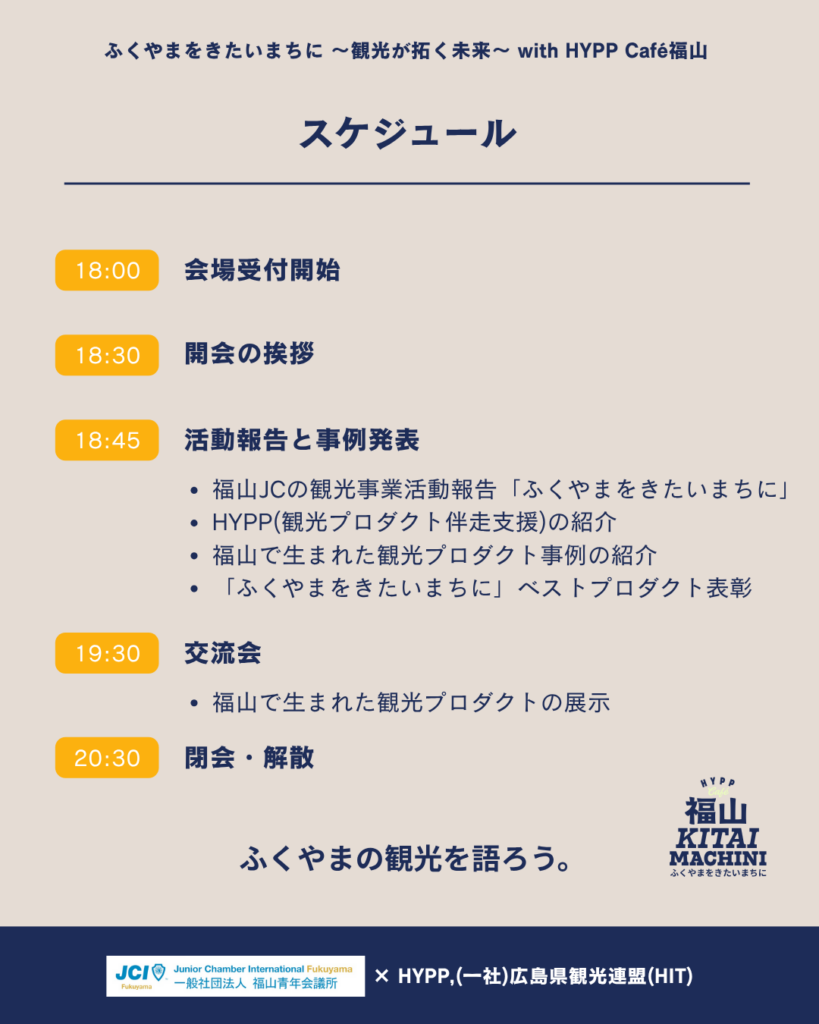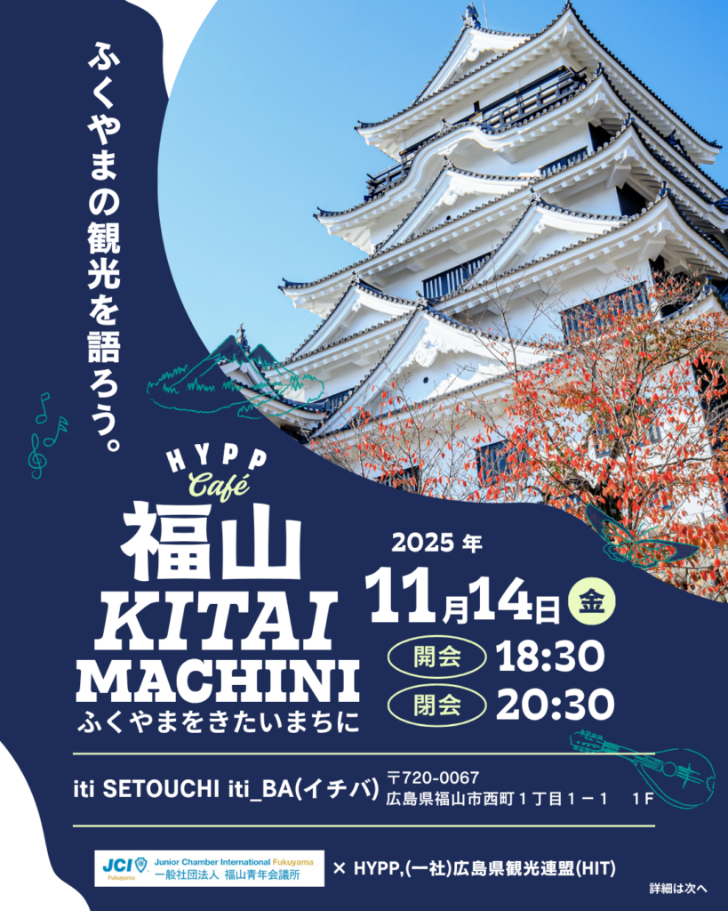主 催:一般社団法人 福山青年会議所 × HYPP × HIT(広島県観光連盟)